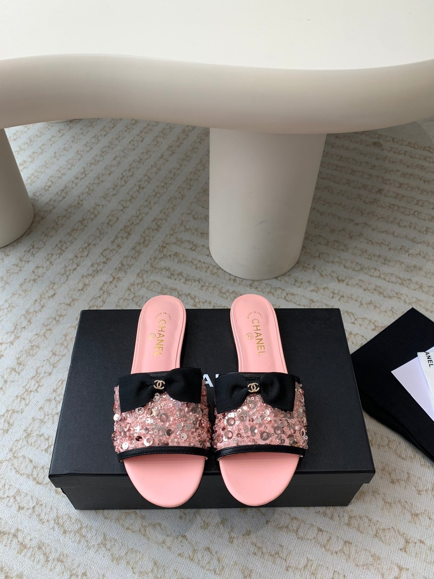 mule sandal pink calfskin glitter sequin