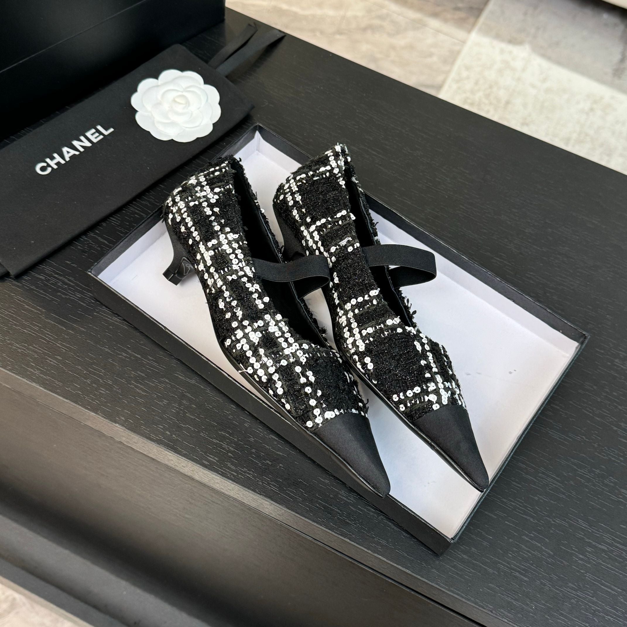 CC 2024 SLINGBACKS 40MM BLACK LAMBSKIN