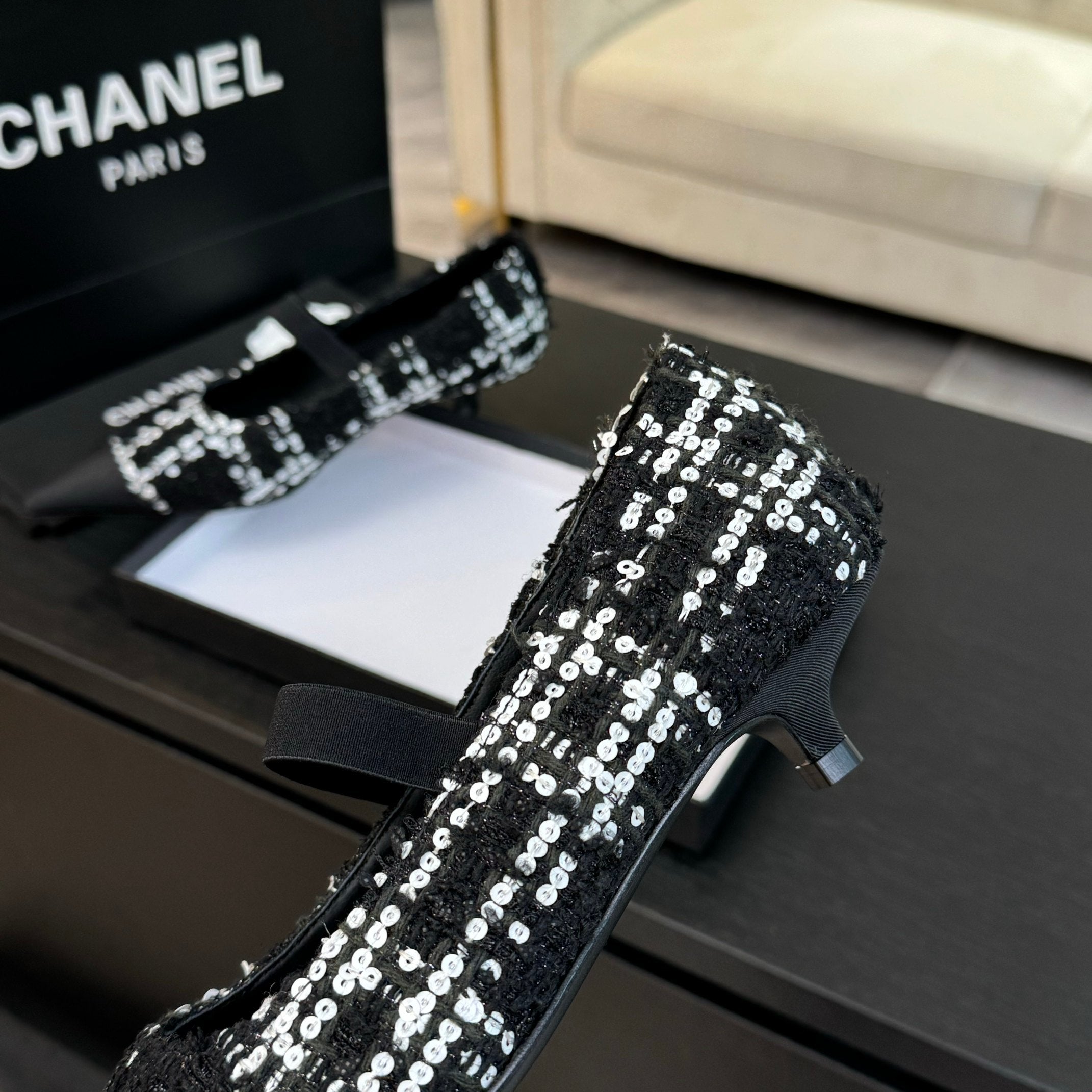 CC MARY JANES BLACK WOOL TWEED AND FABRIC