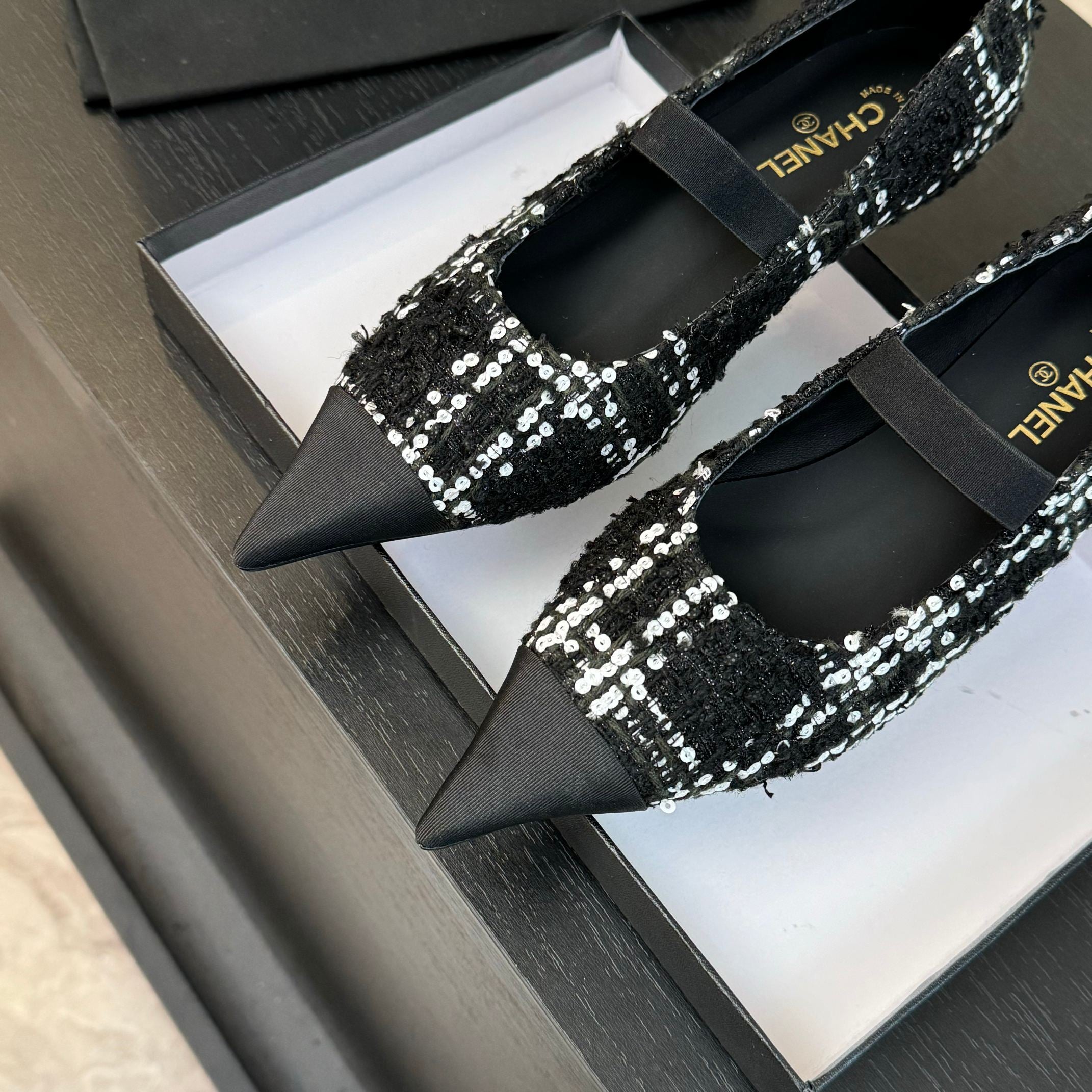 Pointed Toe Mary Jane Shoes Silver Mix Black Lambskin