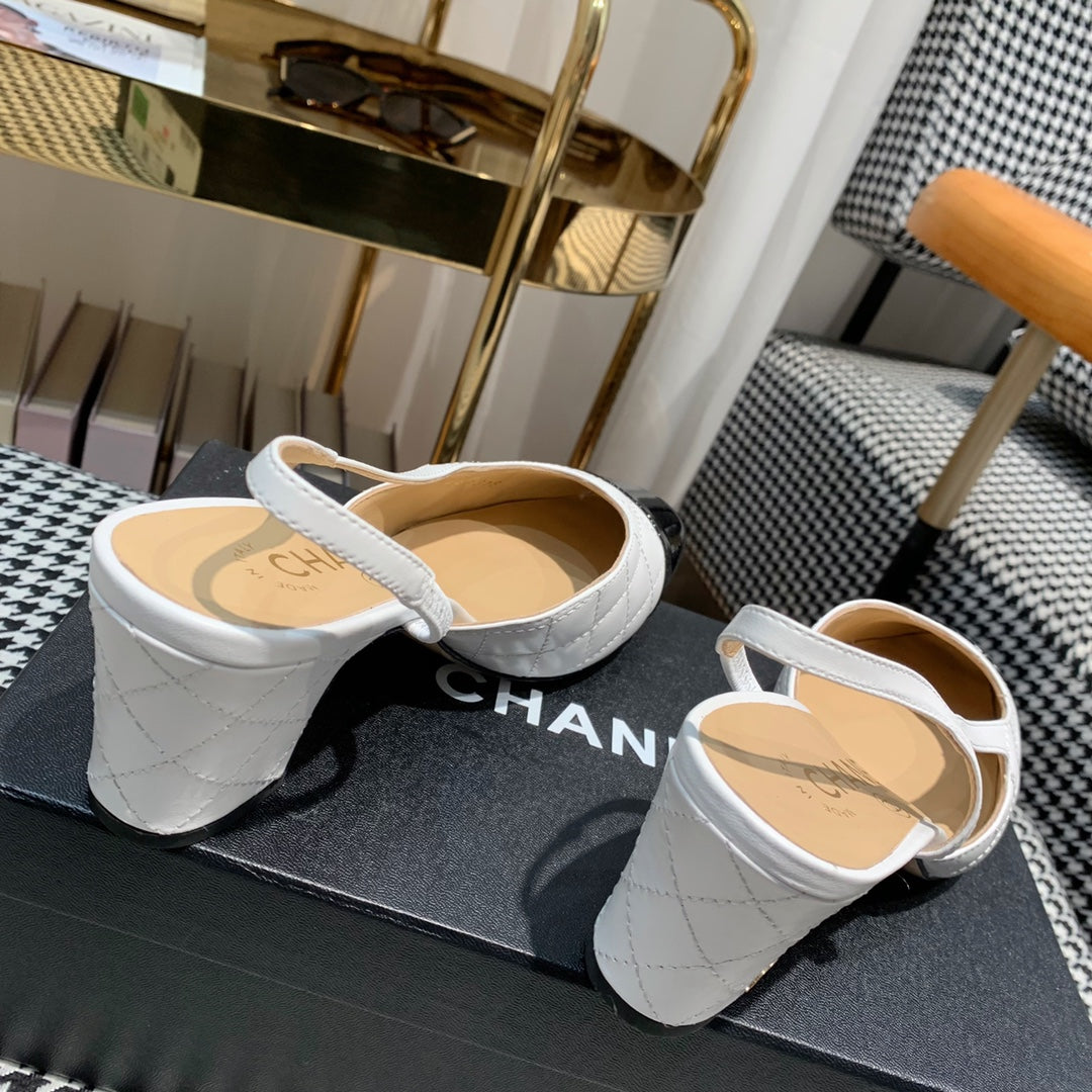 high heel 100 slingback sandal white black quilted calfskin