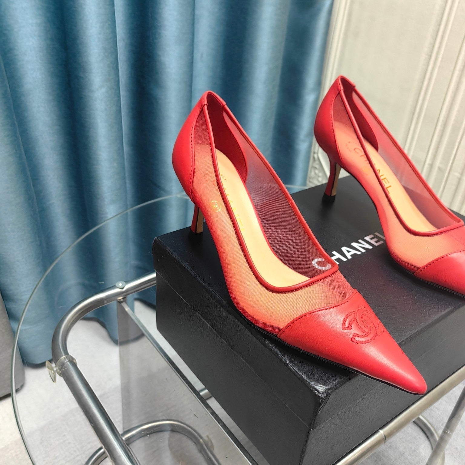 CC Pumps 50 Red Mesh Leather Pointed Toe
