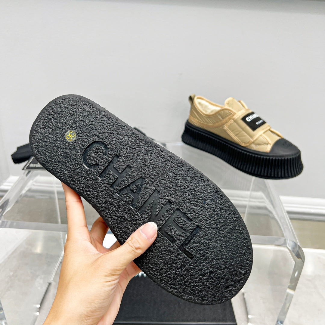 CC Low Sneaker Thick-Soled Beige Rain Velvet Fabric