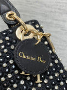 Lady Micro Bag 10cm Black Canvas Diamond Pearl