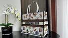 Medium CD Book Tote 36cm White Multicolor Dragon Zodiac Embroidery