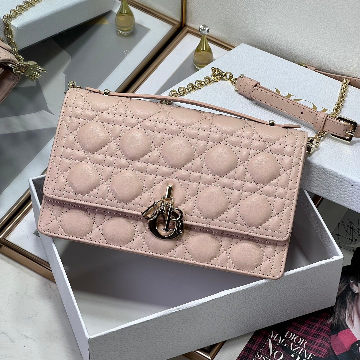 MY CD 24 TOP HANDLE BAG PASTEL PINK LAMBSKIN