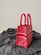 Small CD Book Tote 26.5cm Red Retro Style D Letter Embroidery