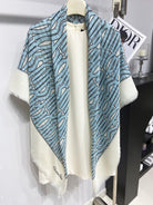 MISS DIOR ALLOVER SHAWL 140 CM IN POWDER BLUE MIX WHITE SILK CASHMERE 411630