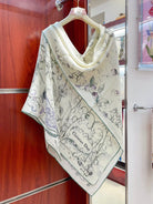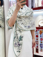 SCARF 140 CM IN WHITE MIX TEAL GREEN CASHMERE AND SILK 376423