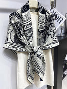 SQUARE SCARF 140 CM IN BLACK MIX WHITE MONOGRAM WOOL AND SILK 415111