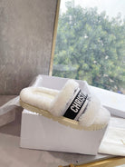 CD 25 Flat Slippers White Black Wool 395565