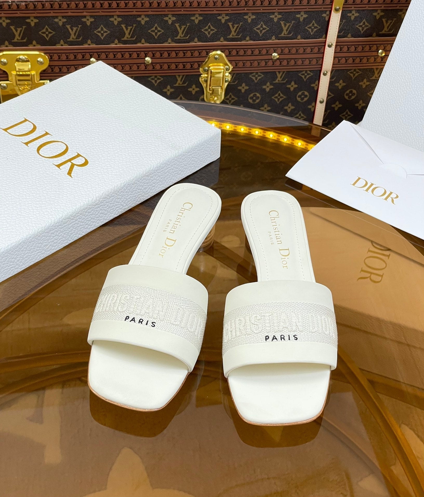 cd slide 45 white calfskin embroidered cotton