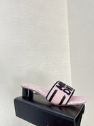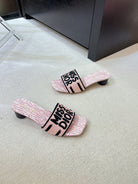 dway heeled slide 35 embroidered cotton pink miss cd alllover motif