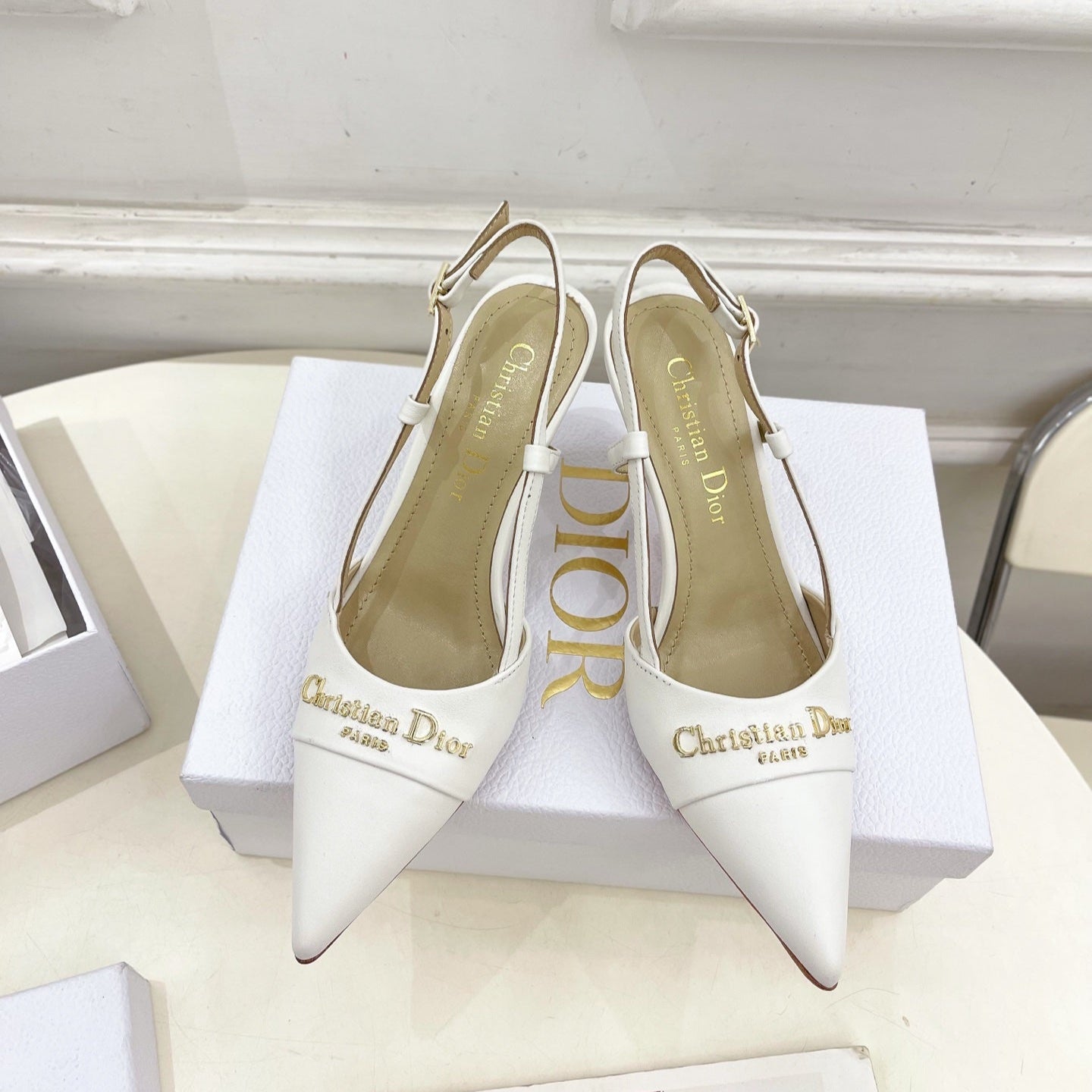 JAdior Slingback Pump 65 White and Gold-Tone Toile de Jouy Mexico Embroidered Cotton with Metallic Thread
