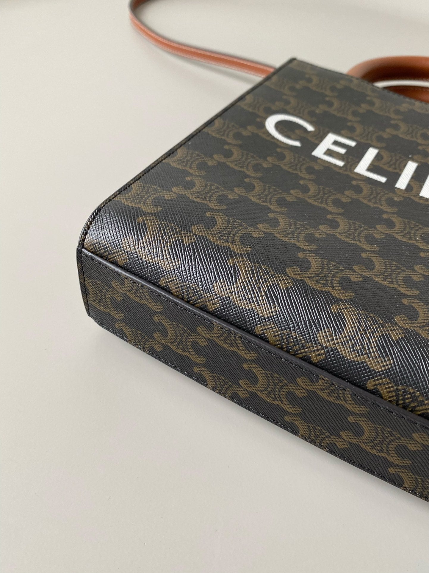 mini vertical cabas 17 black triomphe canvas tan calfskin