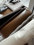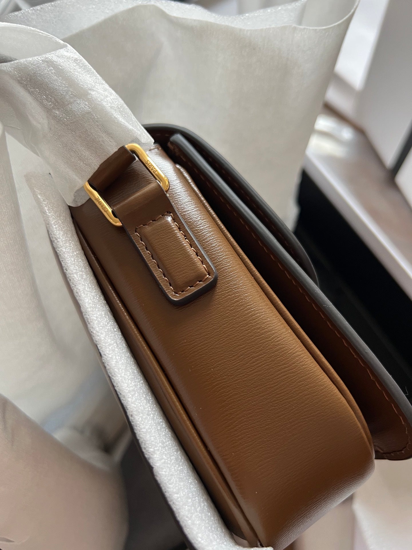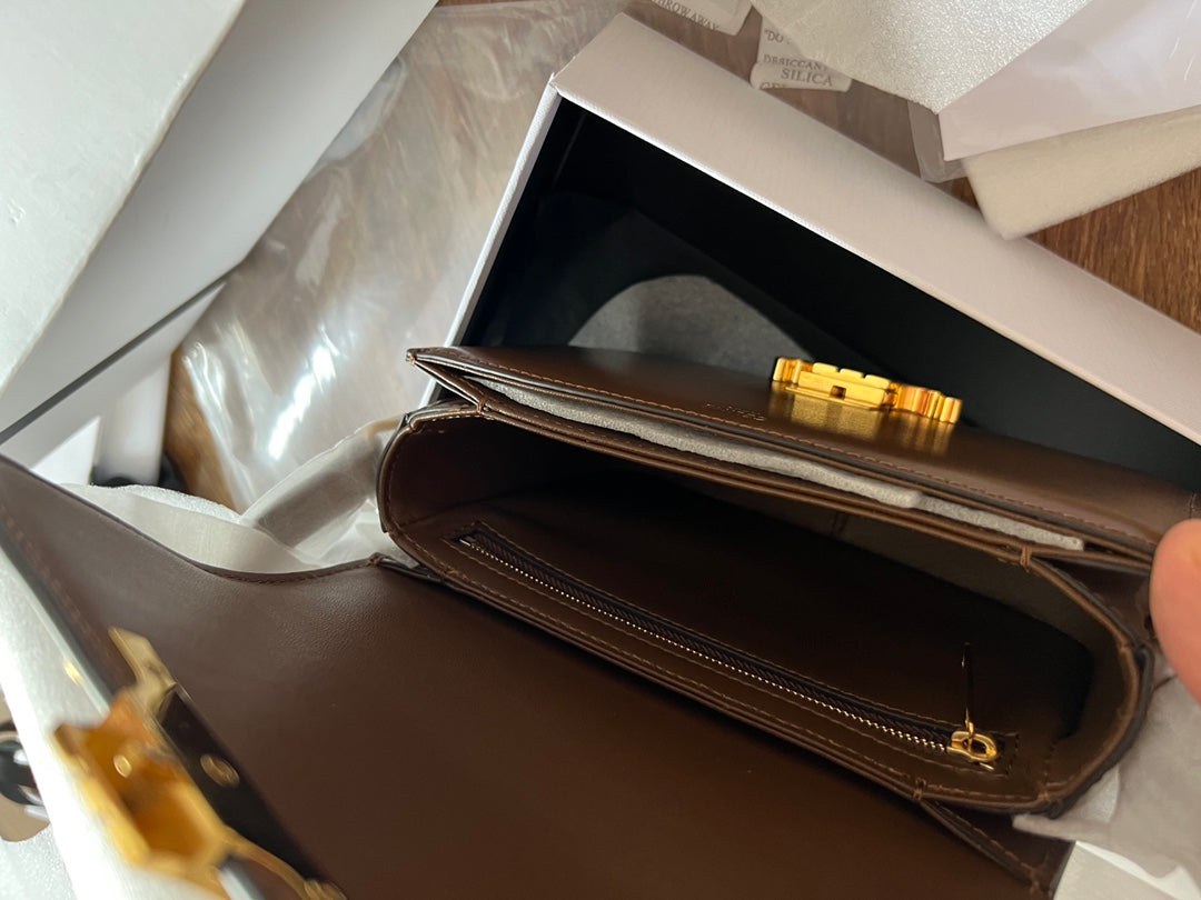 • Color: Dark Brown leather, Gold hardware