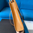 VERTICAL TOTE BAG 33 WHITE BROWN CANVAS AND CALFSKIN