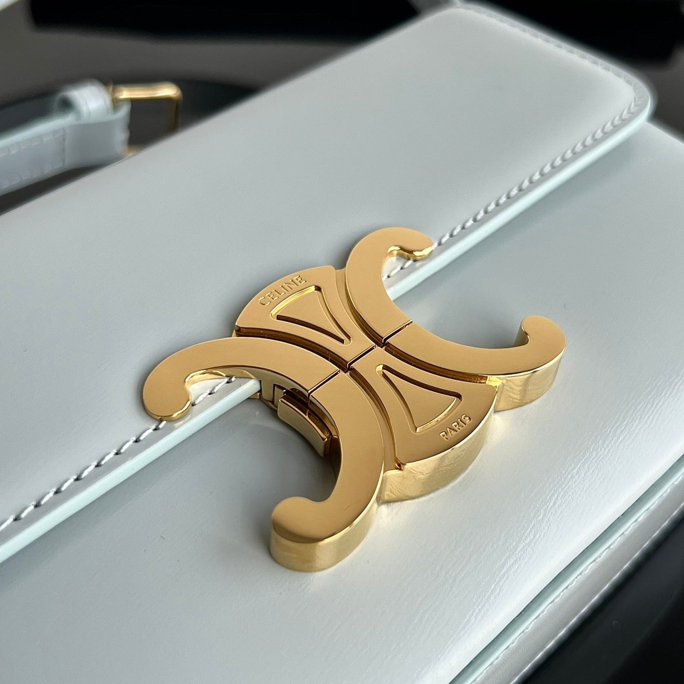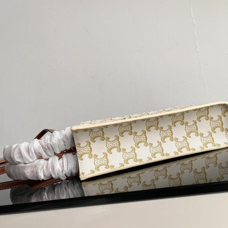 TRIOMPHE SHINY CALFSKIN HANDBAG 18 CREAM GREY