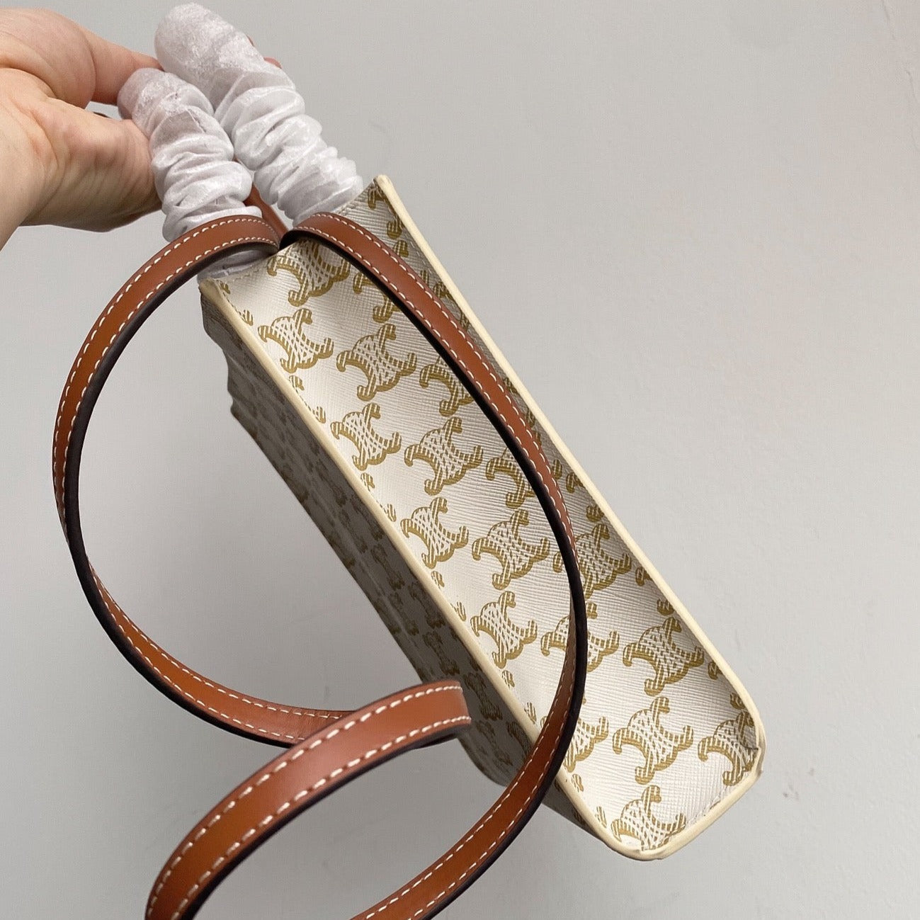 VERTICAL TOTE BAG 33 WHITE BROWN CANVAS AND CALFSKIN