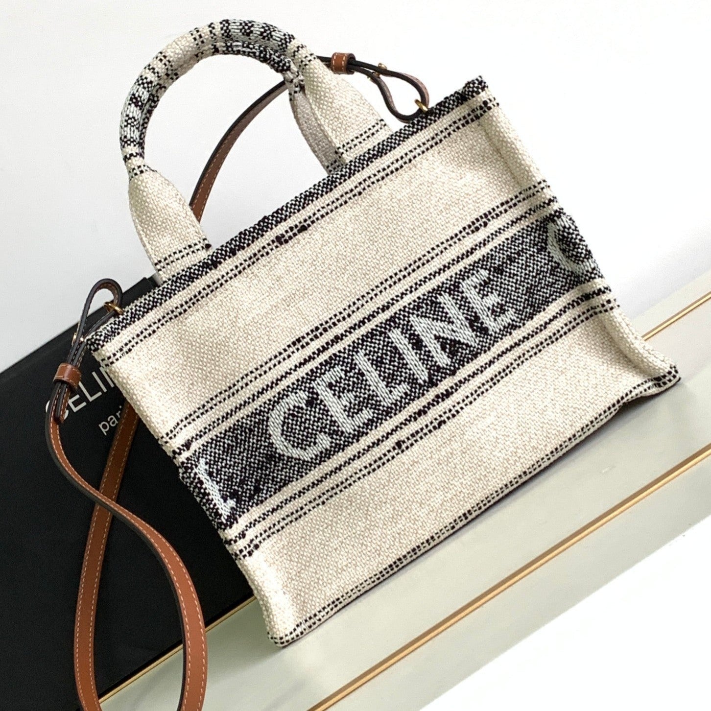 mini vertical cabas 17 black triomphe canvas tan calfskin