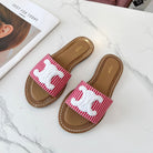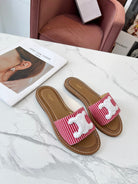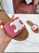 Celine 25C Slippers Red mix White Fabric with Calfskin 238167