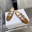 FLAT SANDALS WITH DOUBLE STRAP-DESIGN LEATHER CARAMEL BROWN
