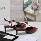 HIGH 5 CM SLINGBACK IN CHERRY RED CALFSKIN WITH GOLD LOGO