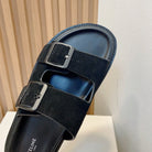 TWIN-STRAP SANDALS WITH SUEDE UPPERS AND BUCKLE CLOSURE BLACK