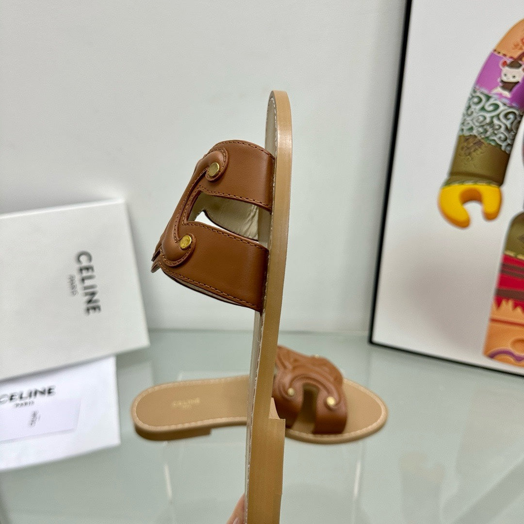 LYMPIA TRIOMPHE THONG IN CALFSKIN CARAMEL BROWN