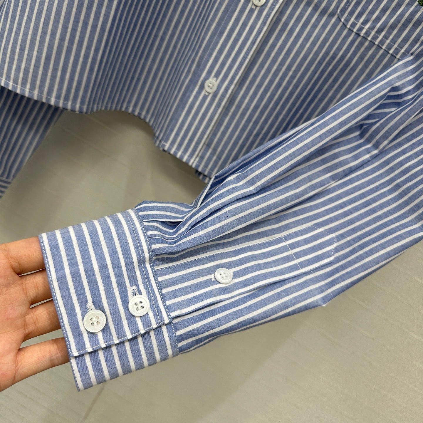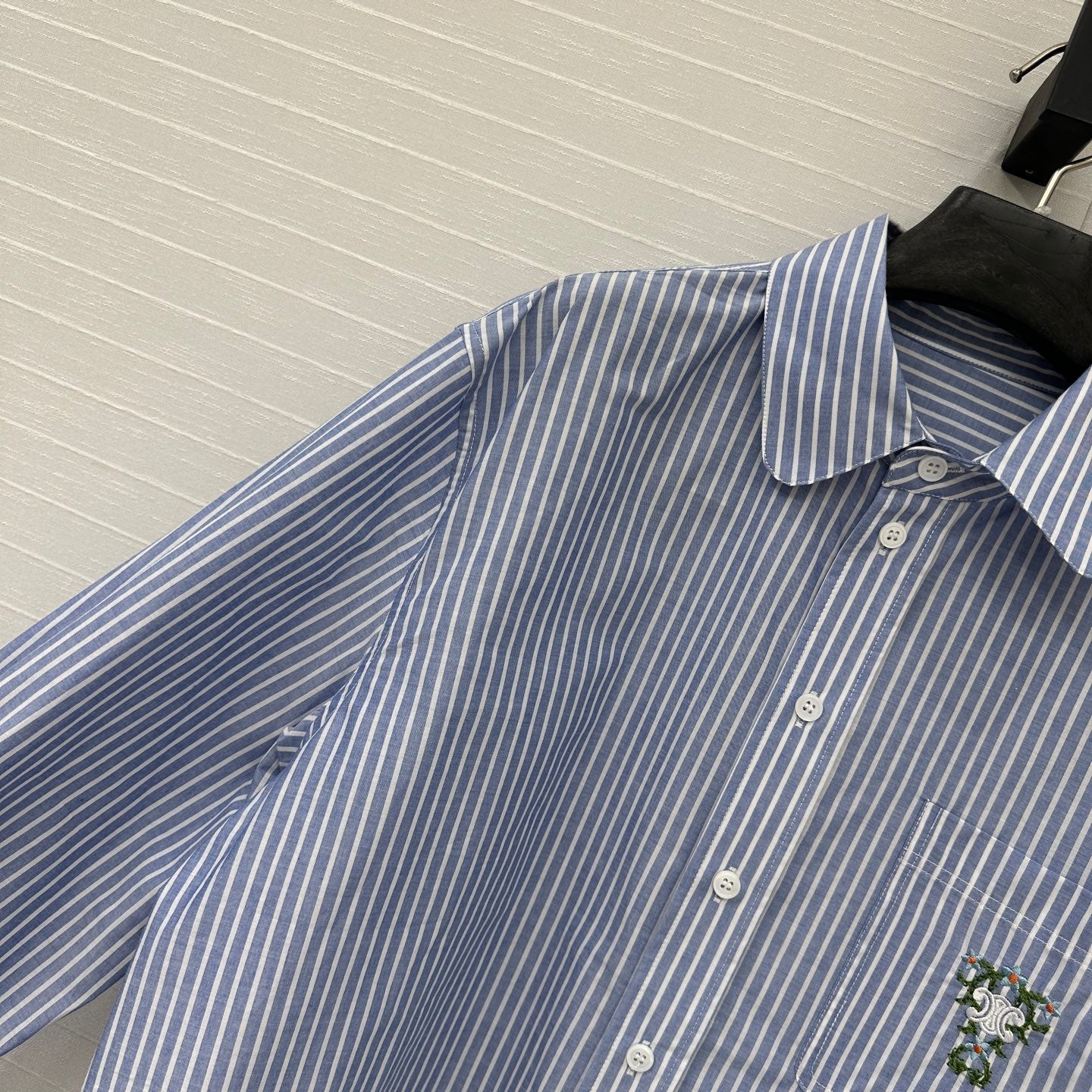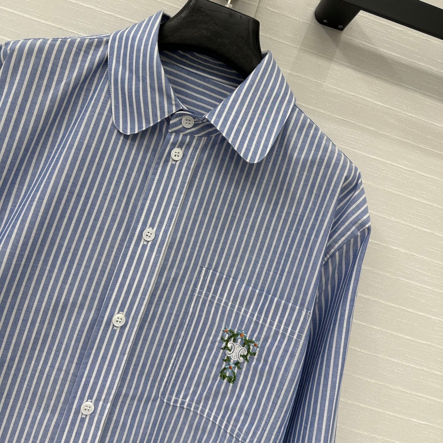 Celine 25 Striped Long-sleeved Shirt White Cotton 217877