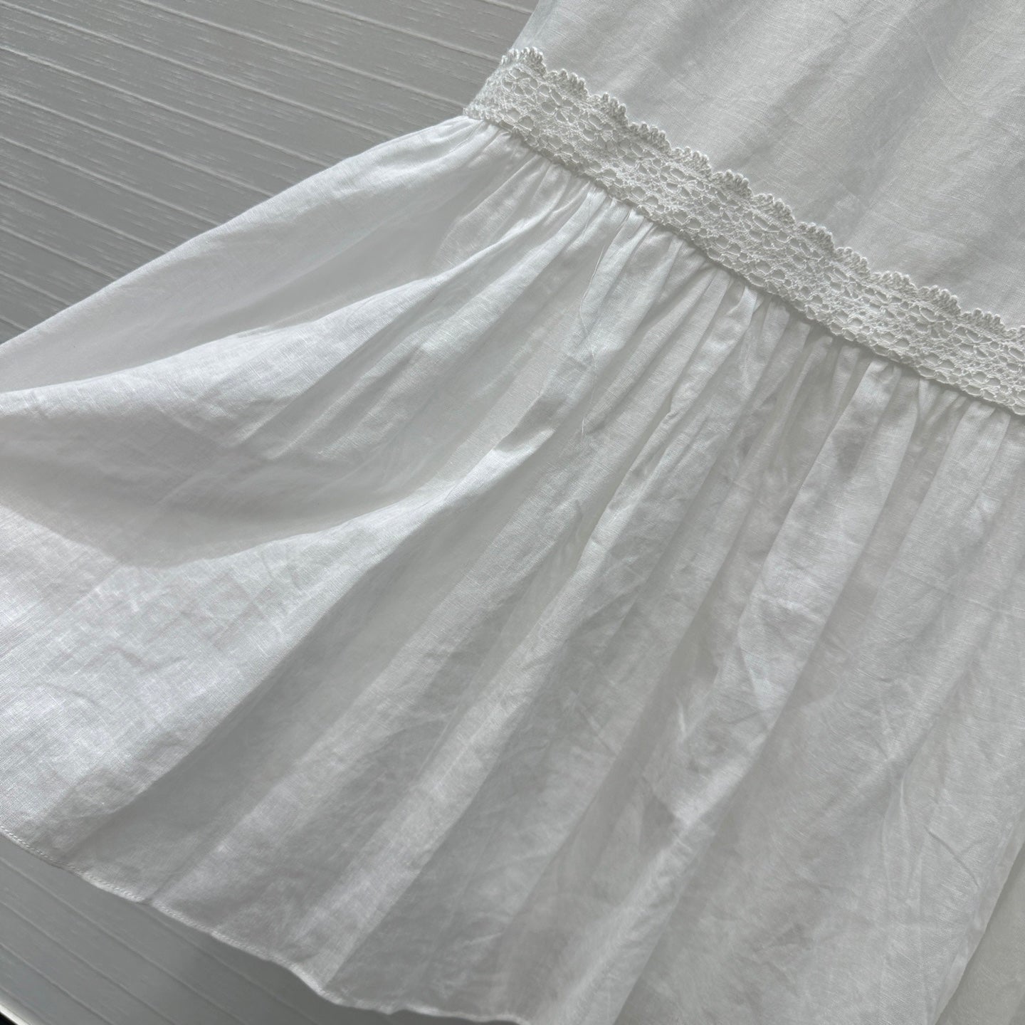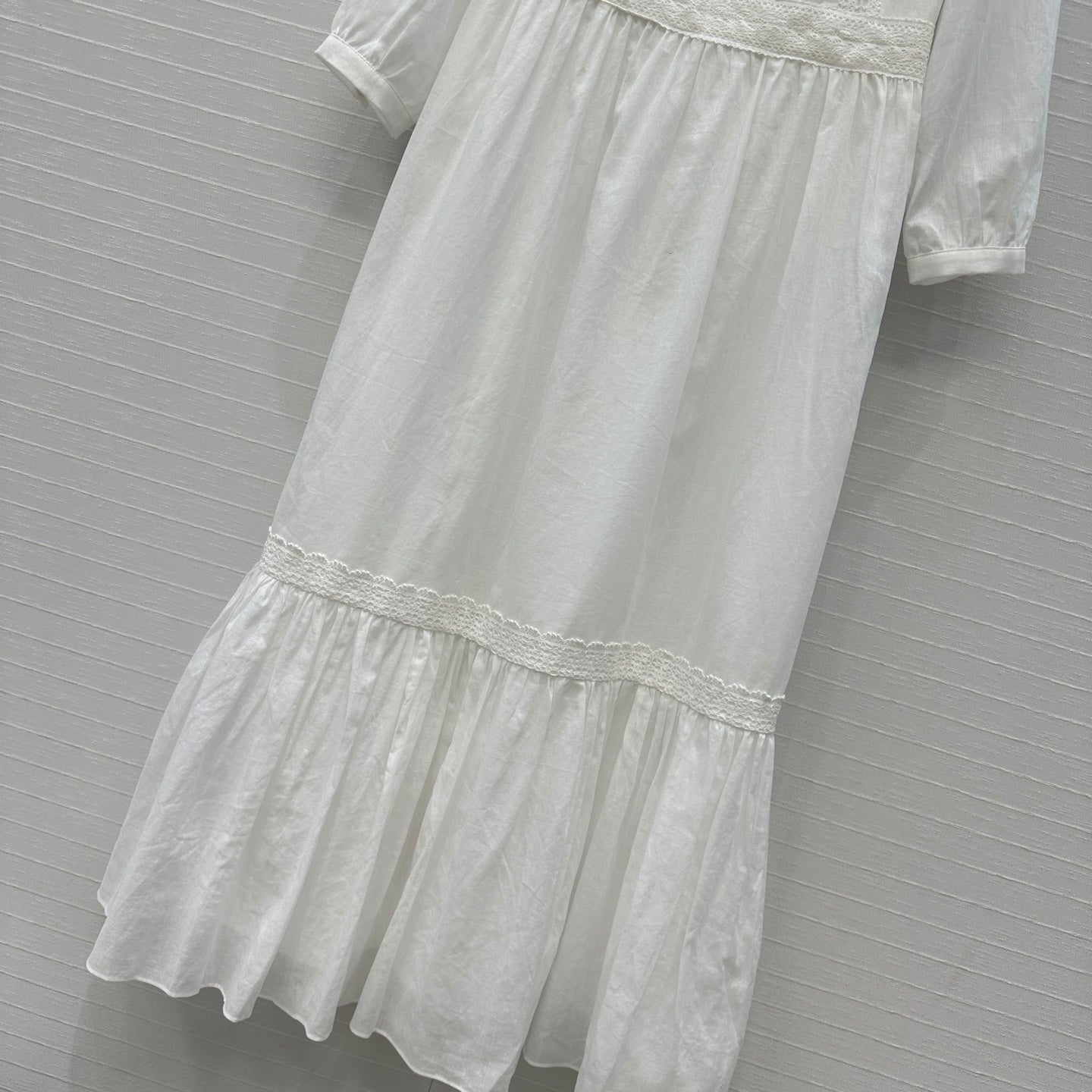 Celine 25 Flying Sleeve Waist Dress White Cotton