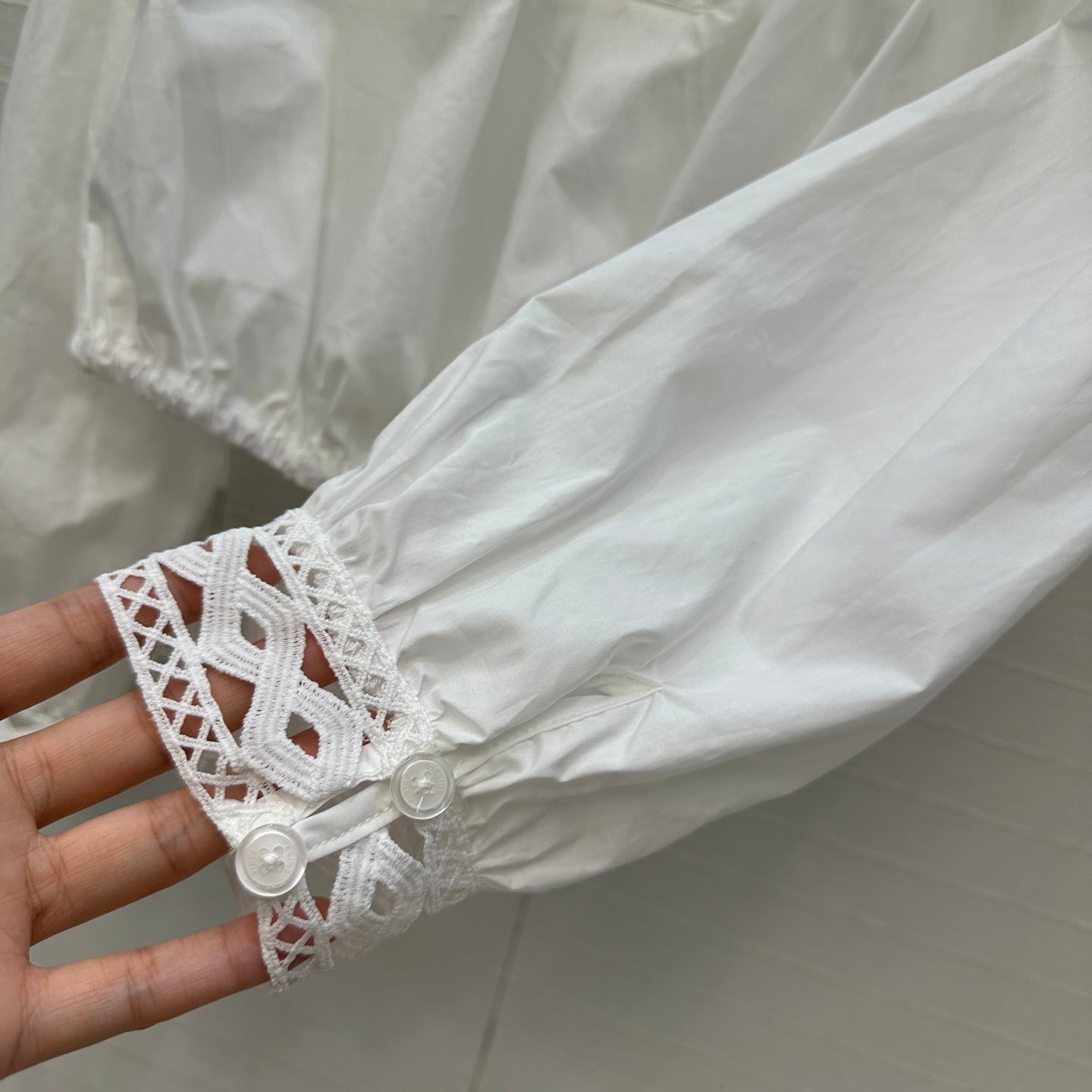 Celine 25 Logo Embroidered Puff Sleeve Shirt Whiet Cotton