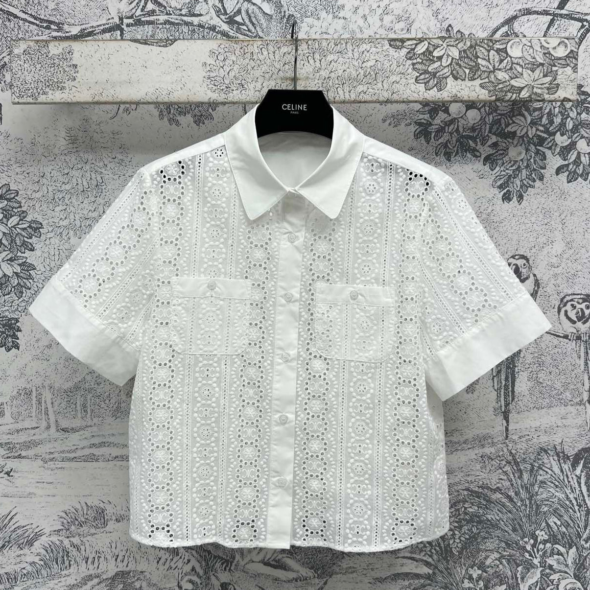 Celine 25 Hollow Shirt Dress with Gold Metal Button White Cotton