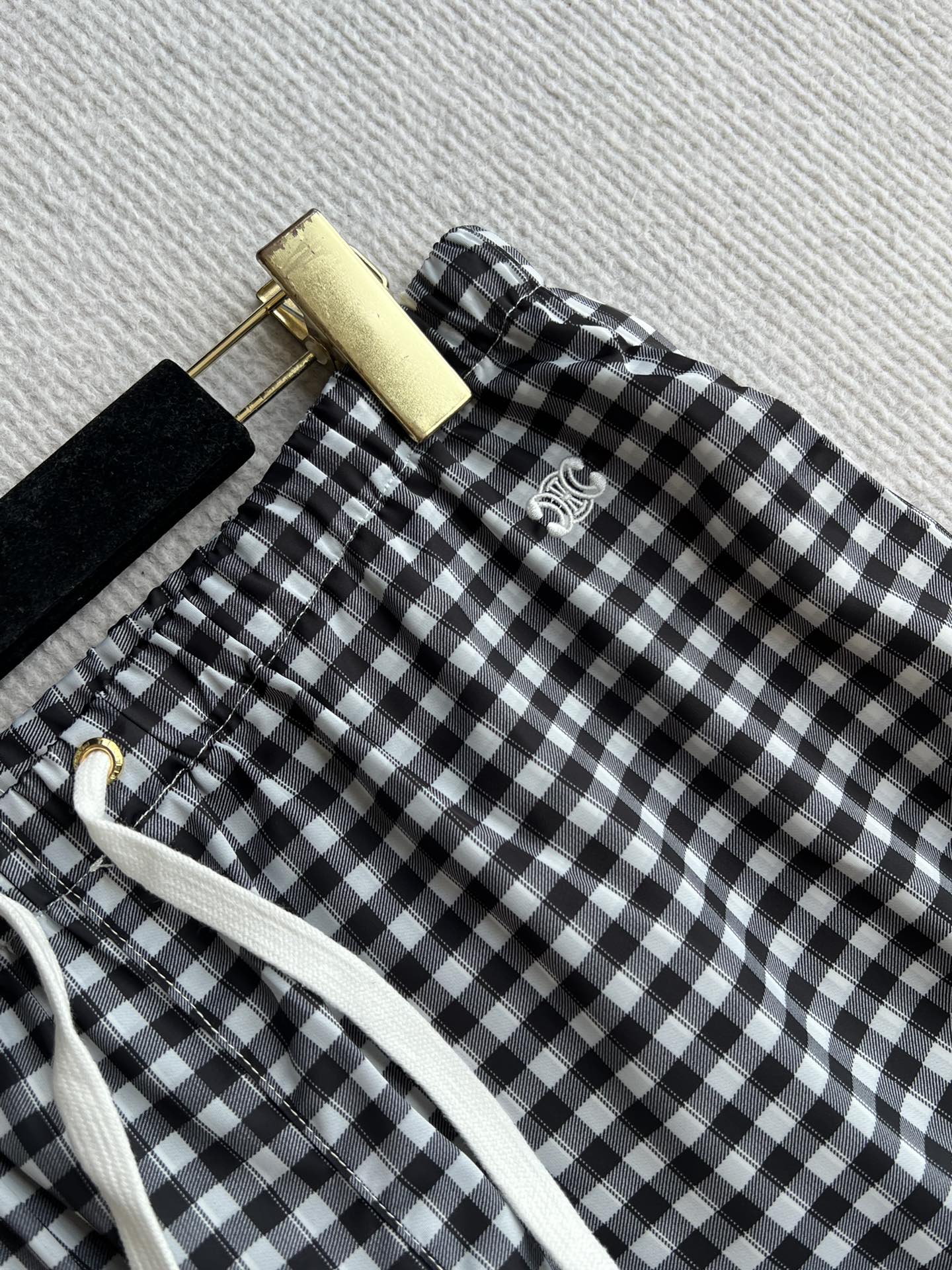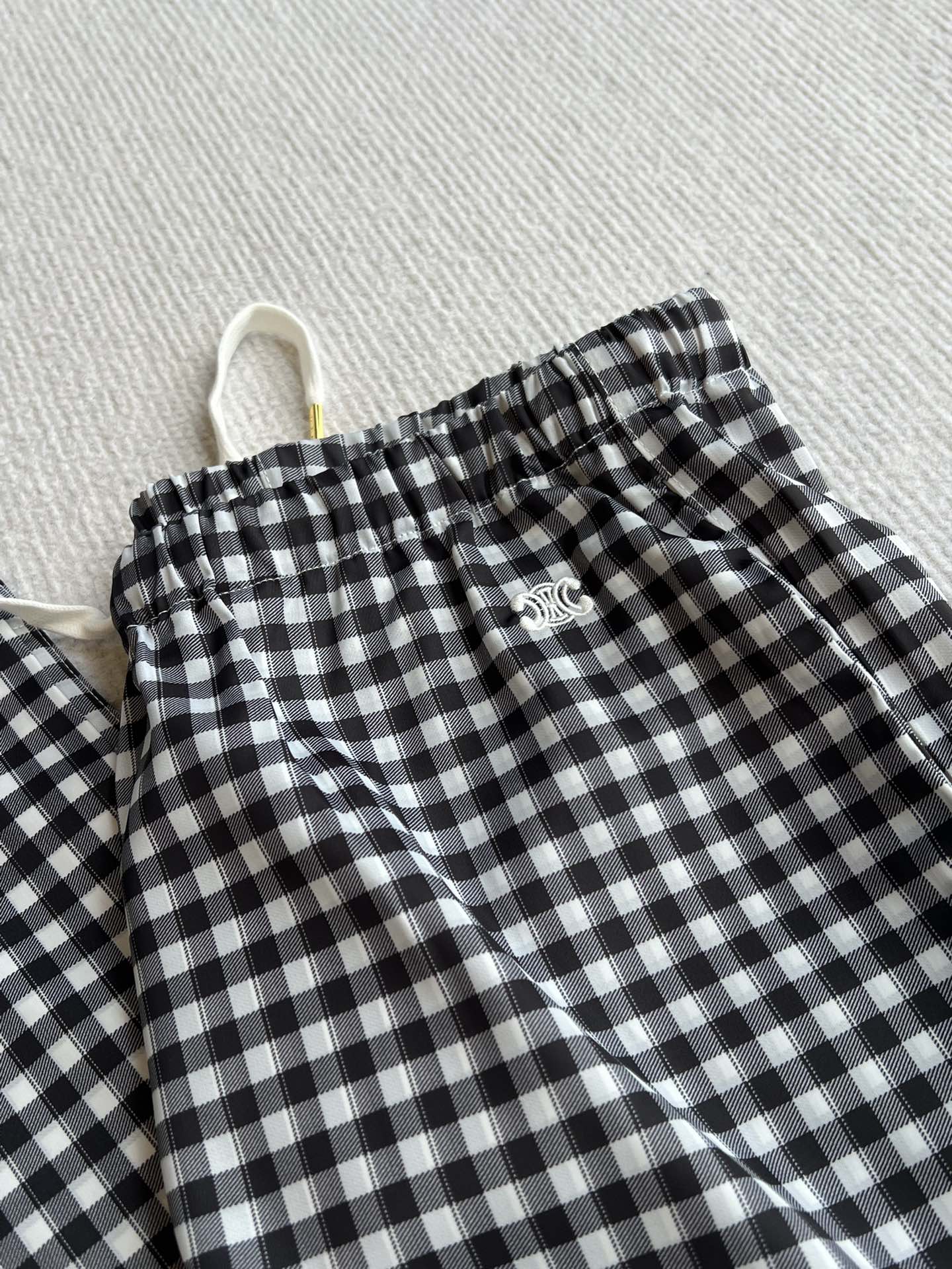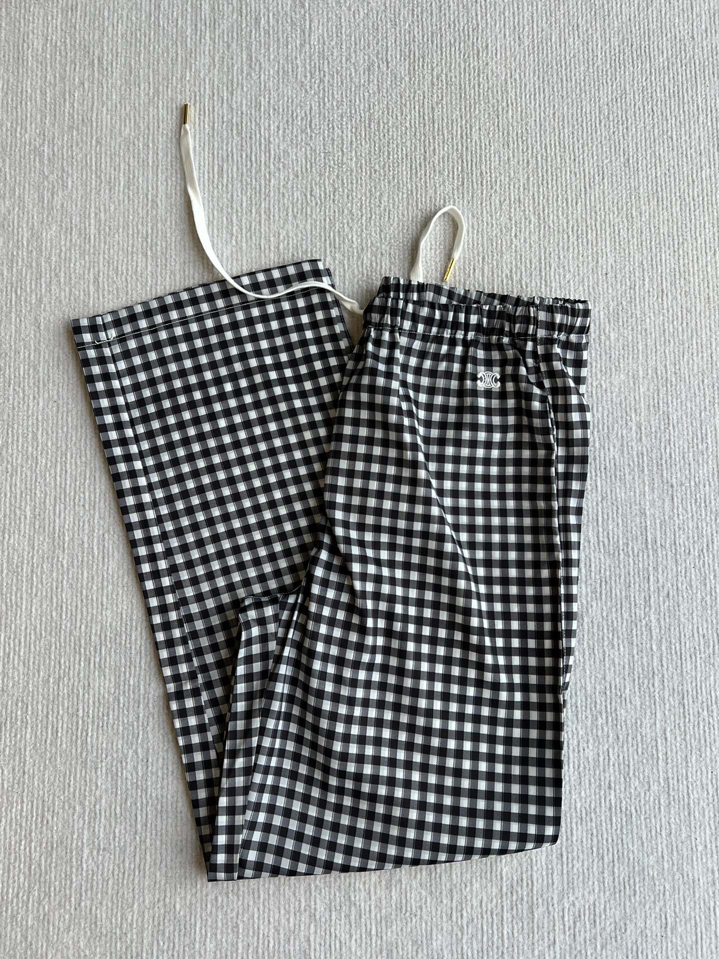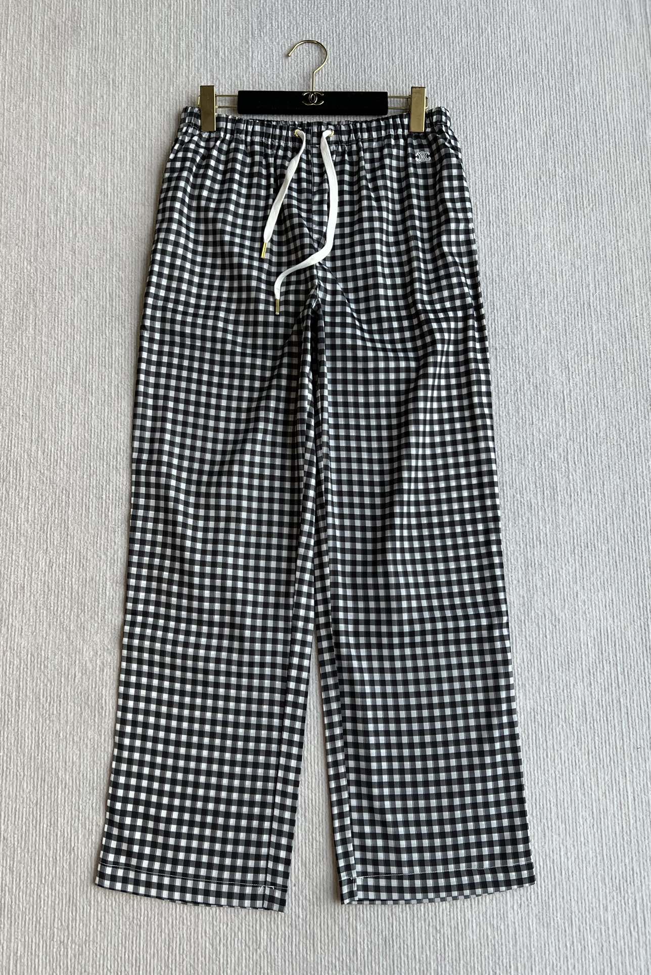 Celine 25 Arc de Triomphe Plaid Casual Pants Black White Polyester