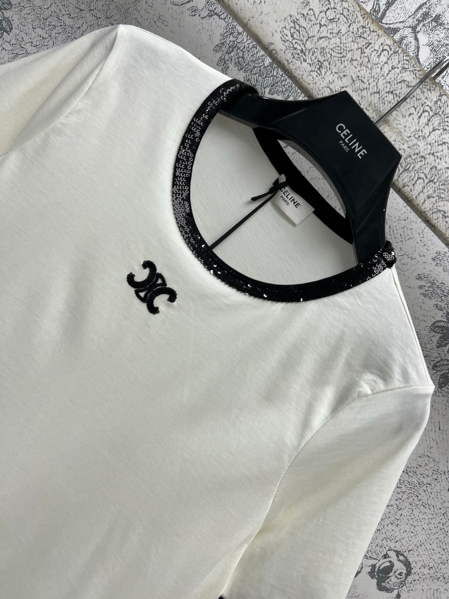 Celine 25 Embroidered Logo T-shirt White mix Black Cotton Polyester