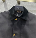 Celine 25 Lapel Short Trench Coat Black Gold Cotton Polyester