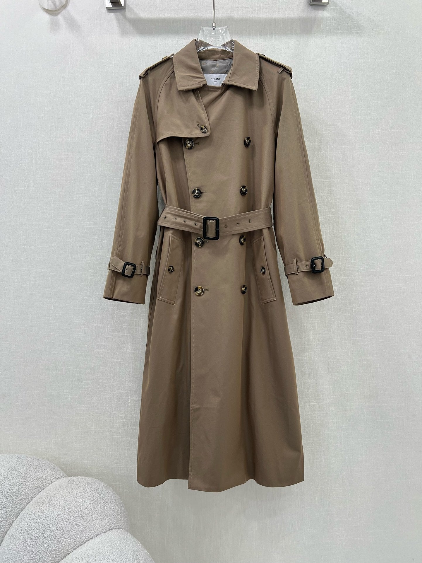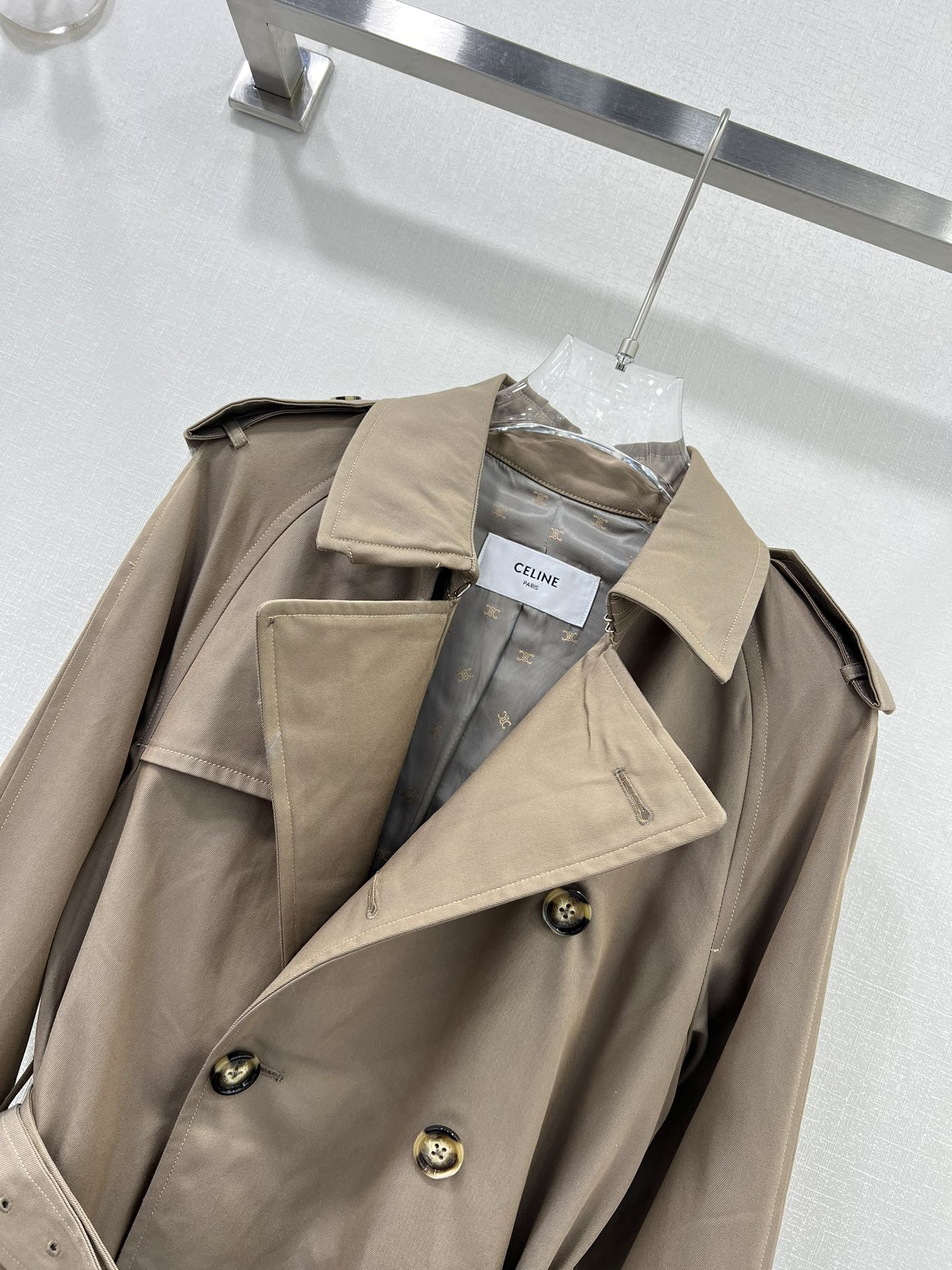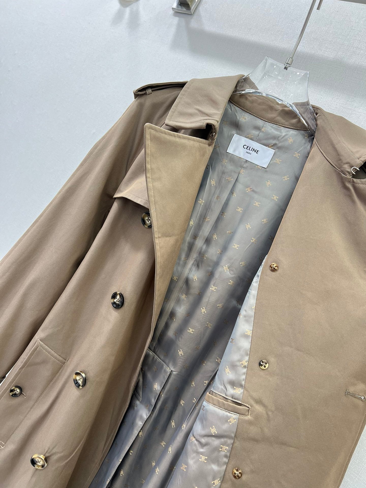 Celine 25 Trench Coat Khaki Wool 299519