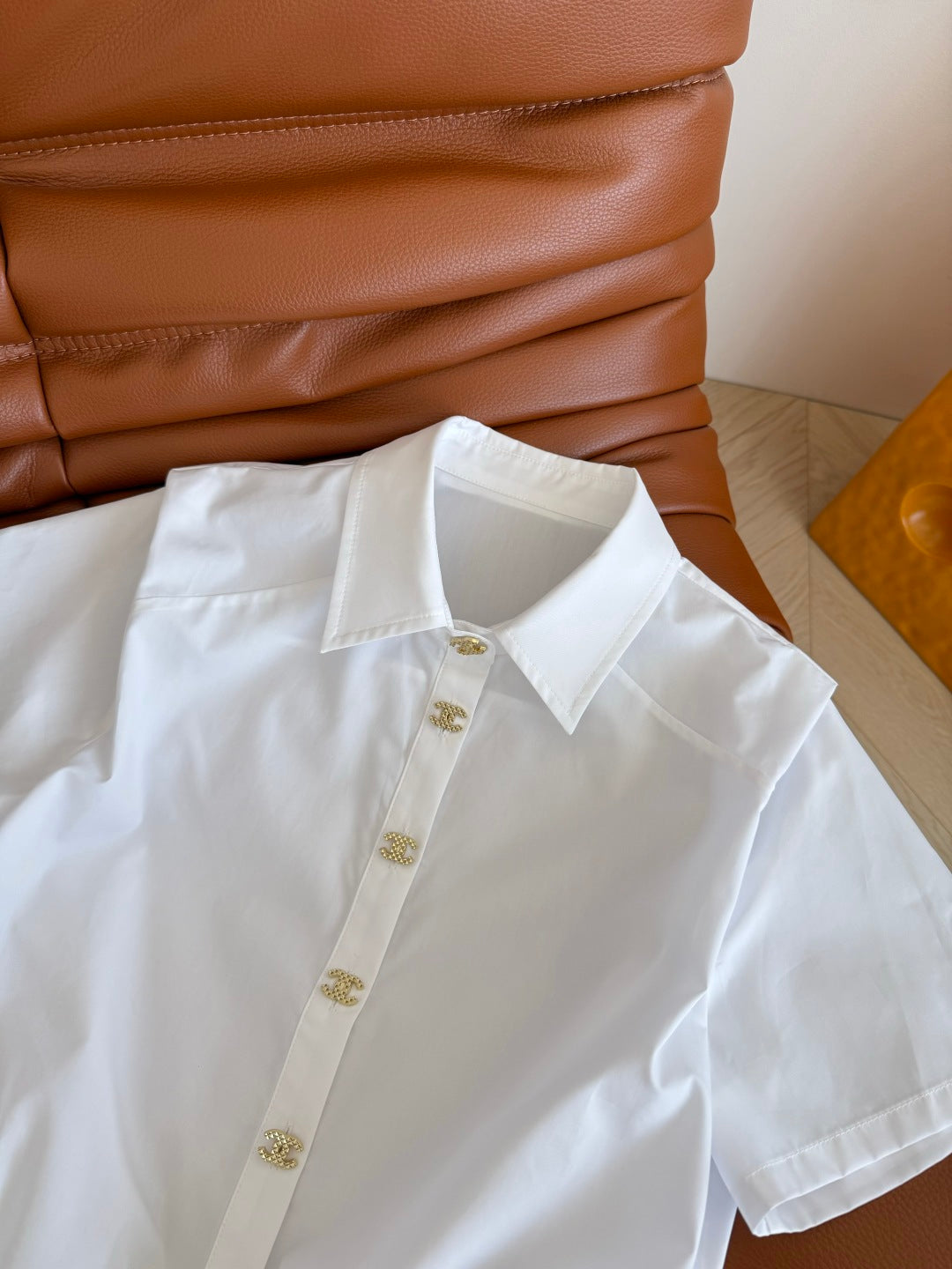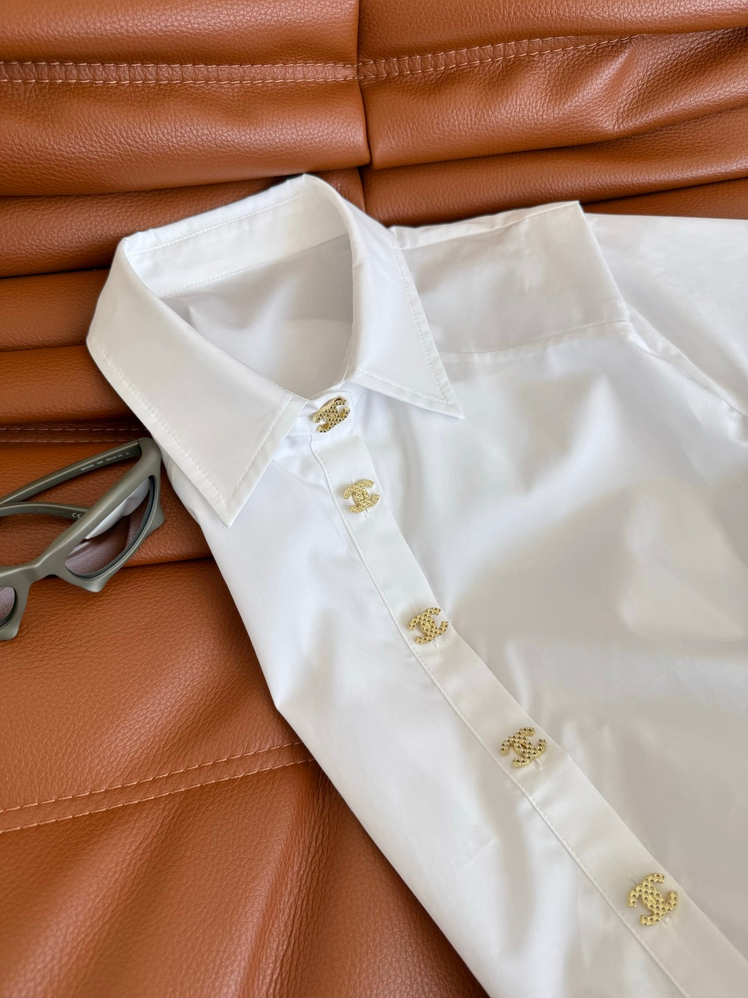 Celine 25 Wide Shoulder with Gold Metal Button White Cotton