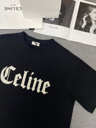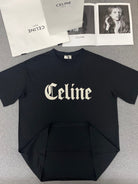 Celine Gothic Embroidered Plain Loose T-shirt Black Cotton