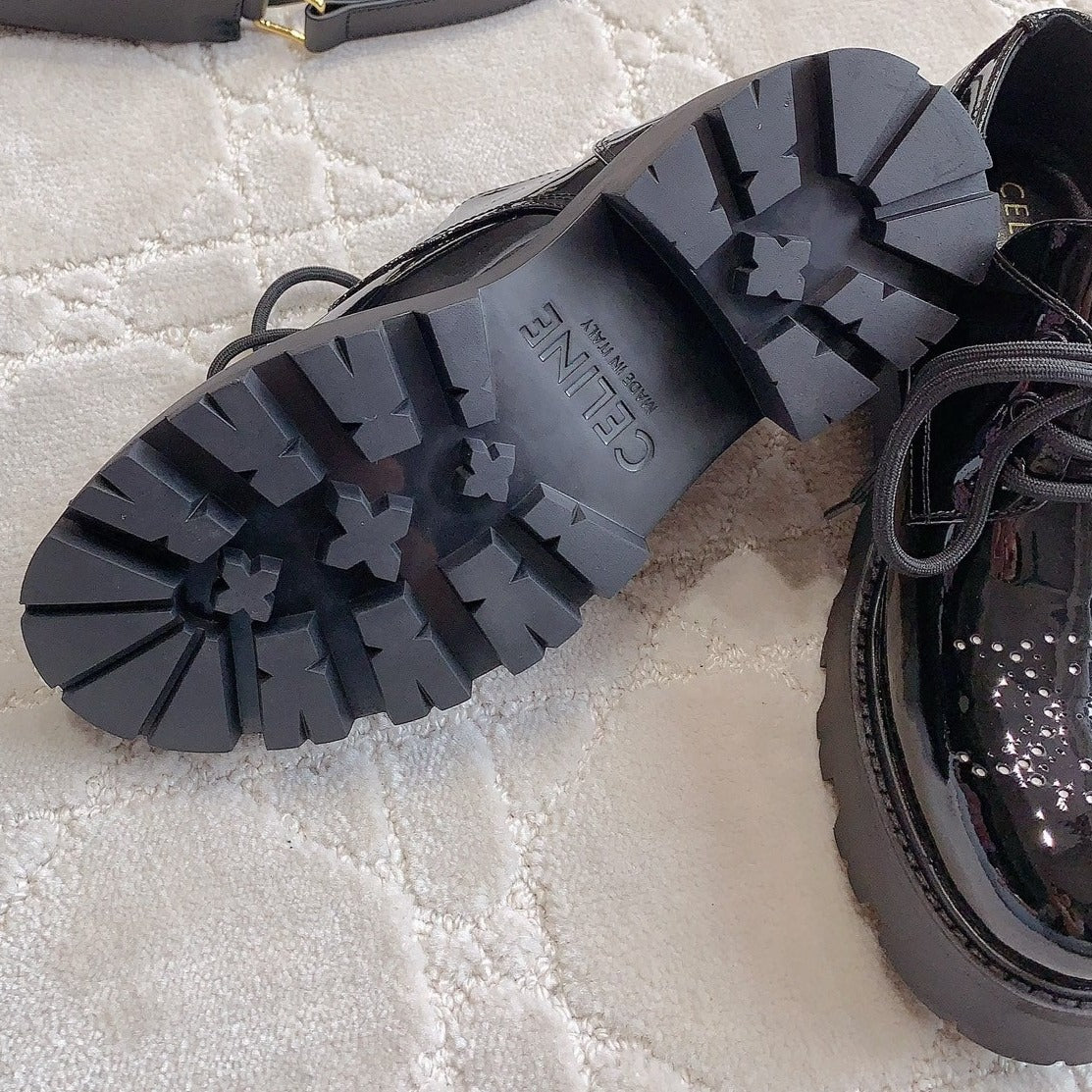 CELINE Buckle Triomphe Loafers Black Leather 285958