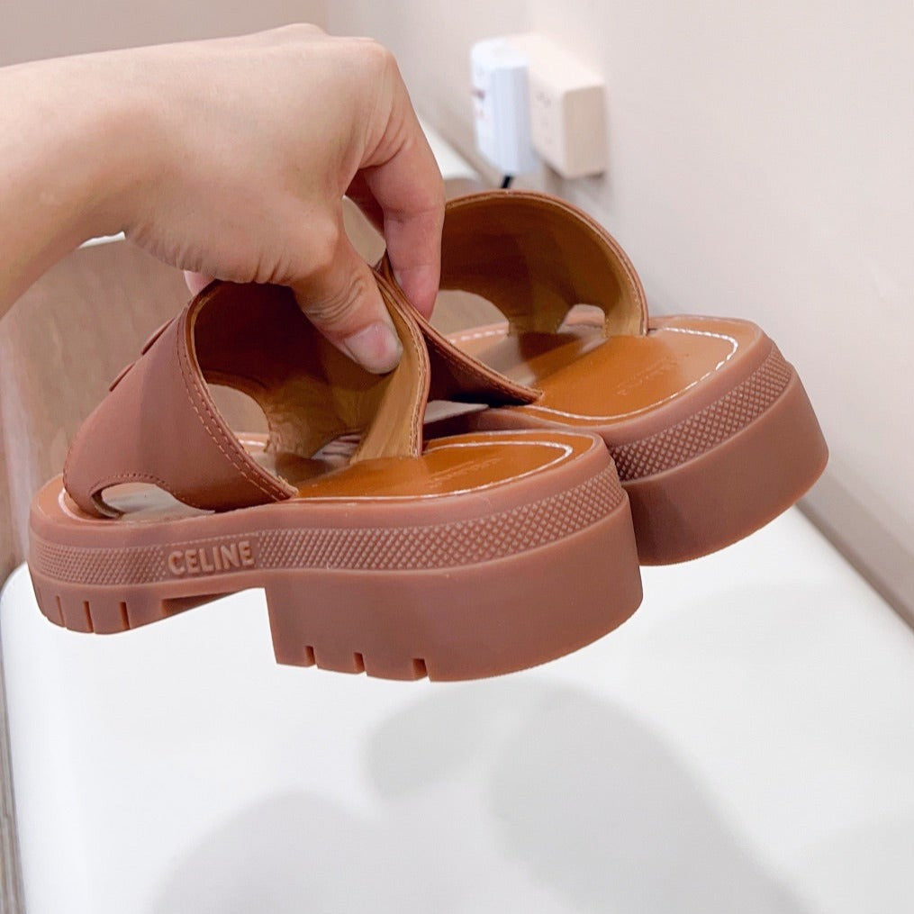 LEA TRIOMPHE PLATFORM SLIDES WOMEN VEGETABLE TANNED CALFSKIN BROWN