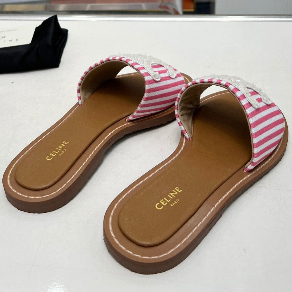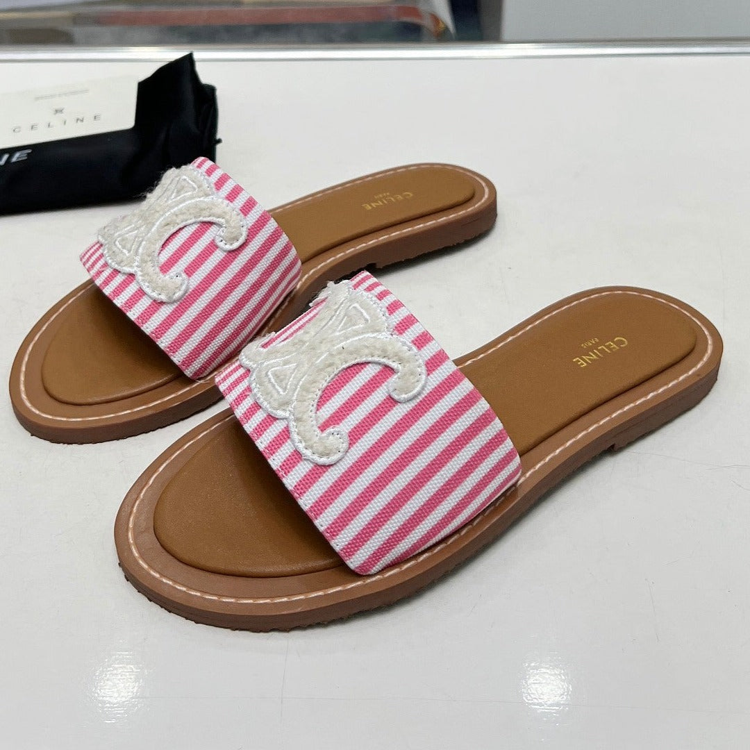 LYMPIA MULE IN TRIOMPHE JACQUARD WOOLLEN FABRIC WHITE PINK CARO
