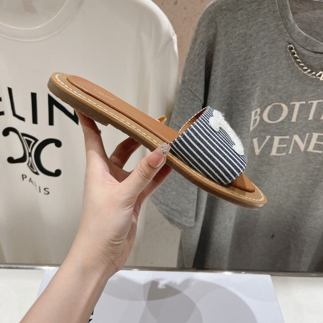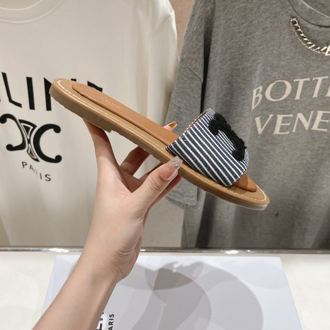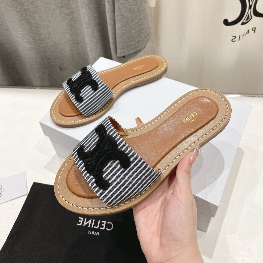 TRIOMPHE SLIDE IN BLACK CALFSKIN
