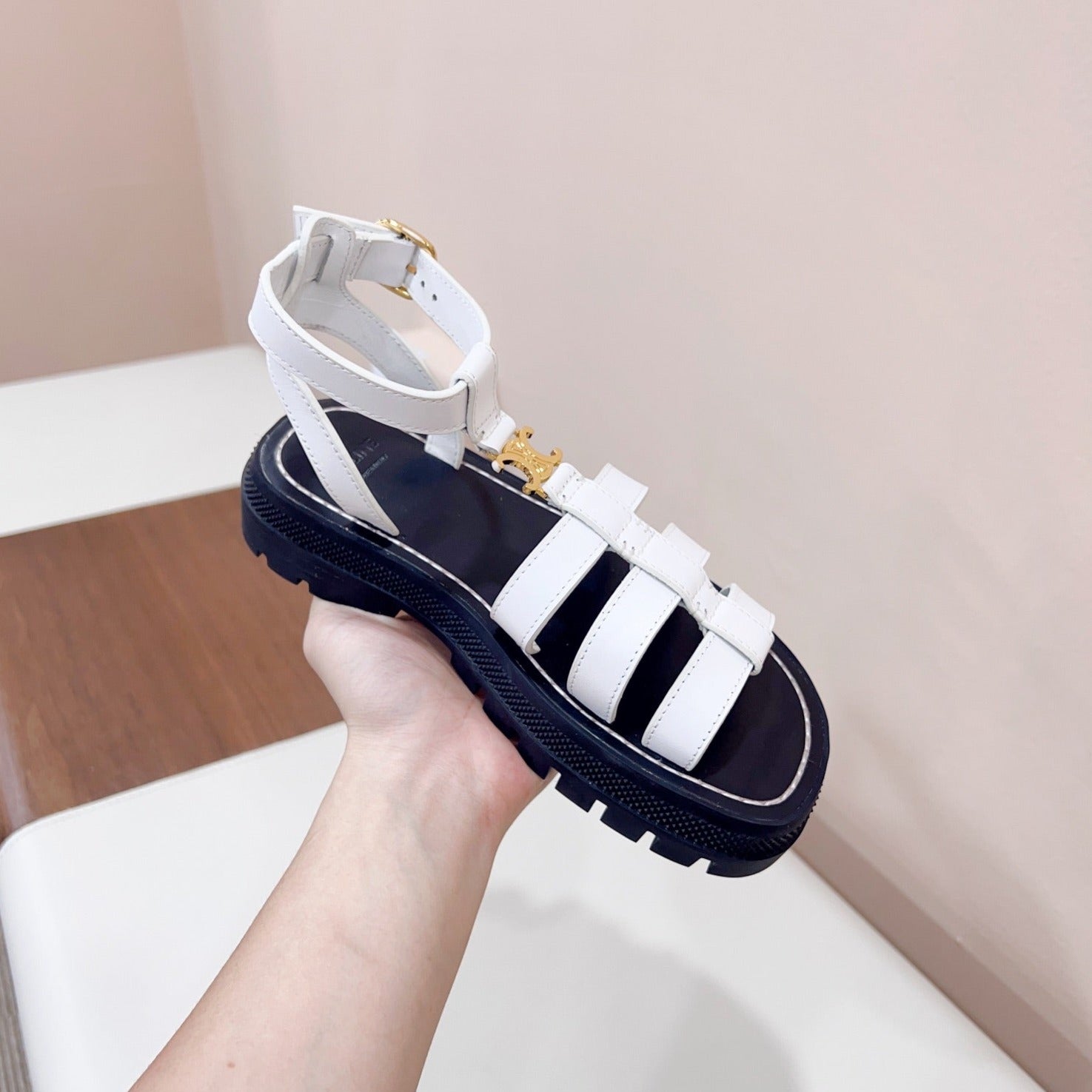 cl roman sandal white brown calfskin