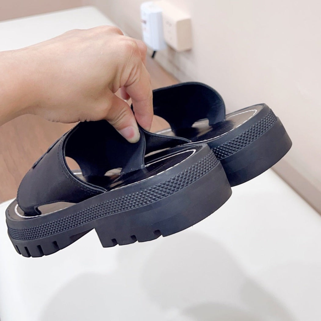 HIGH FLAT SANDALS WITH DOUBLE STRAP-DESIGN LEATHER BLACK