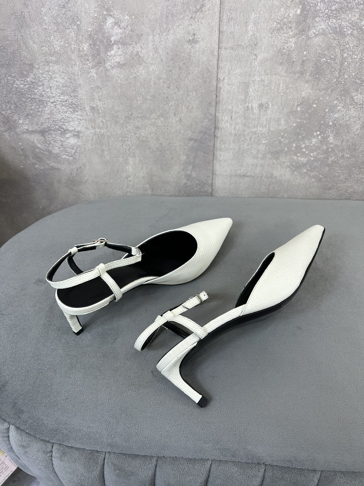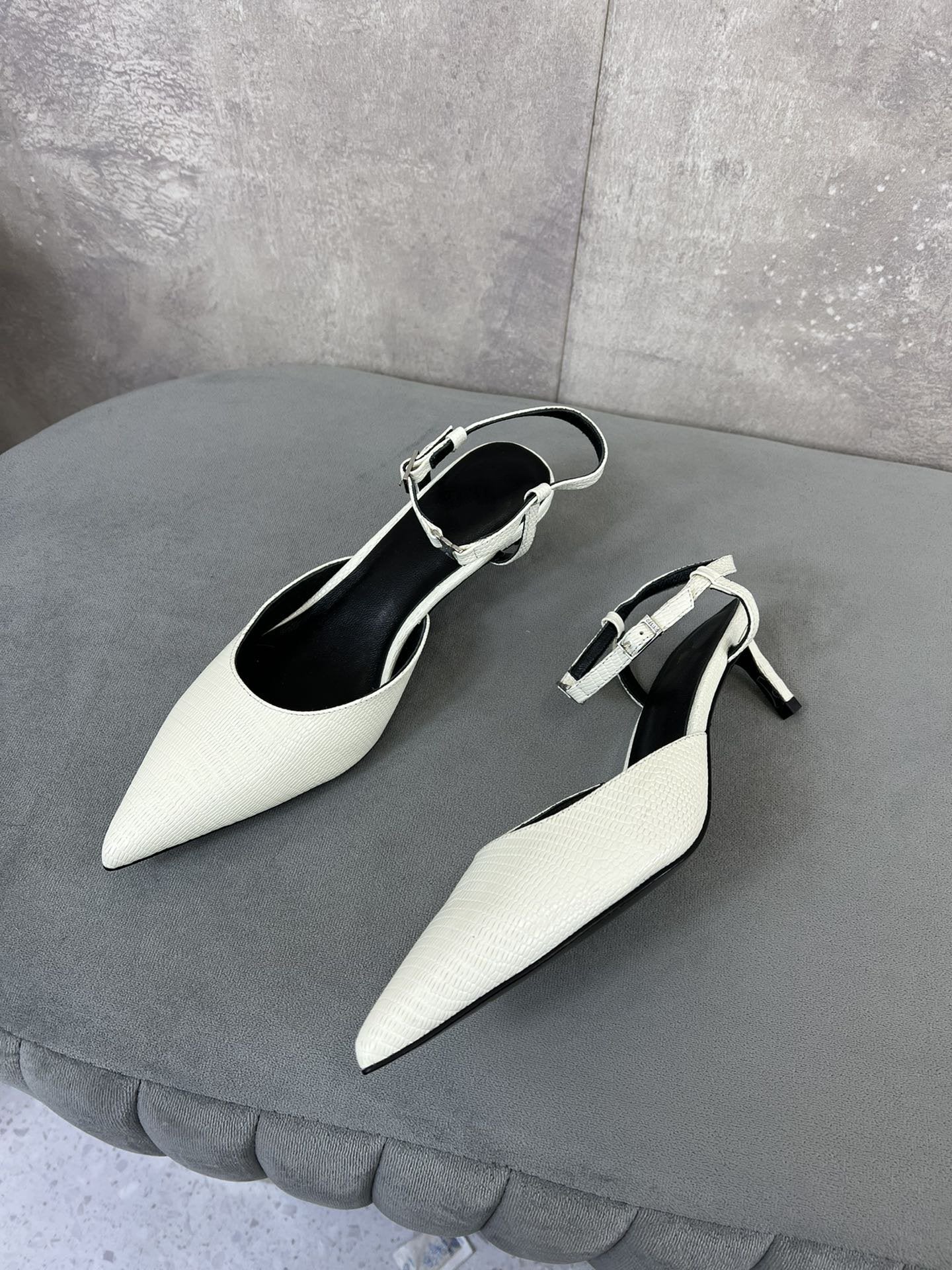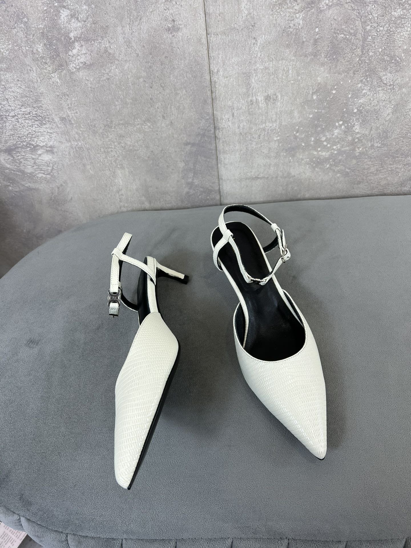 cl kitten with strap 45 white lizard stamped calfskin