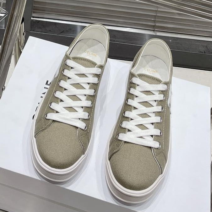 JANE SNEAKERS LOW LACE-UP WITH TRIOMPHE PATCH IN CANVAS AND CALFSKIN STONE GRAY/ WHITE LOGO