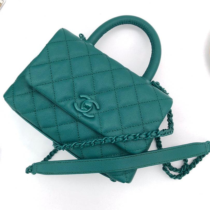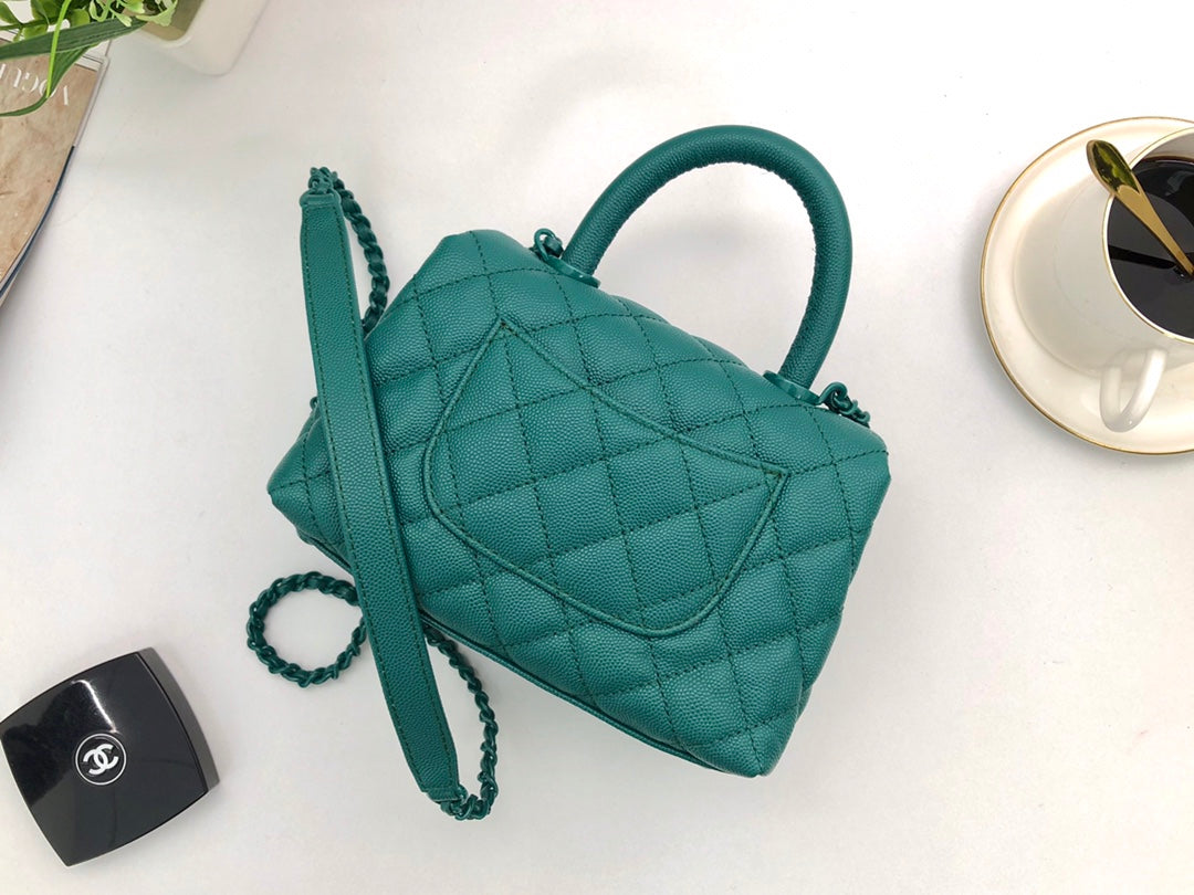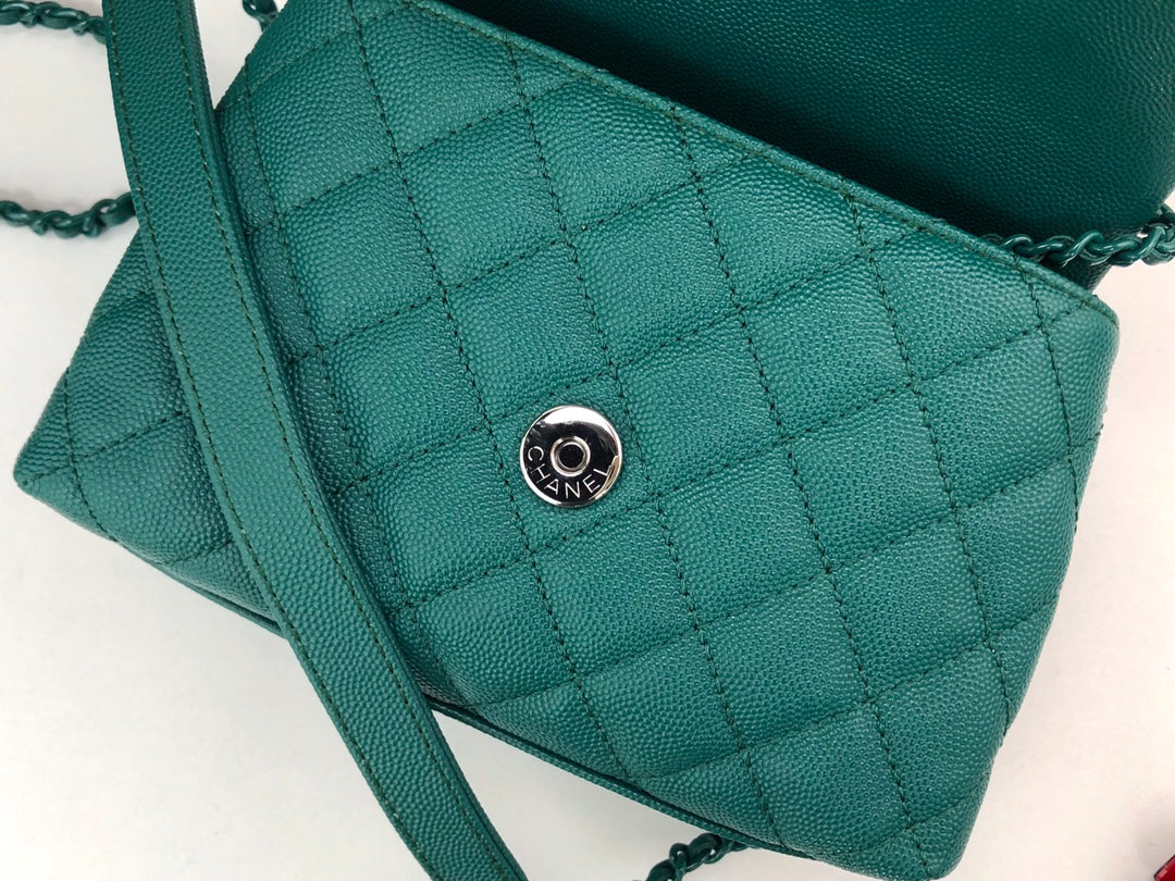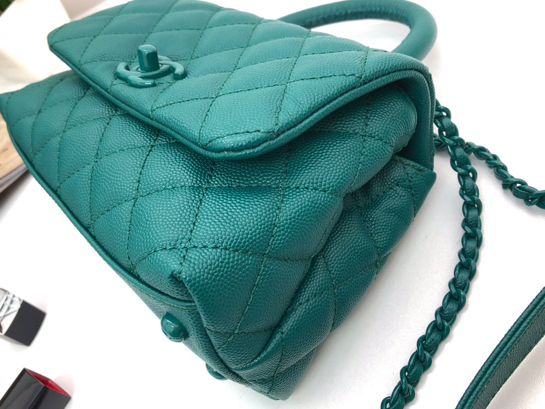 CC Coco Hanle Mini 19cm Emerald Green Grained Calfskin Gold Hardware