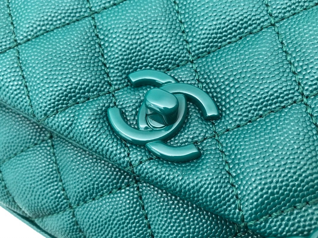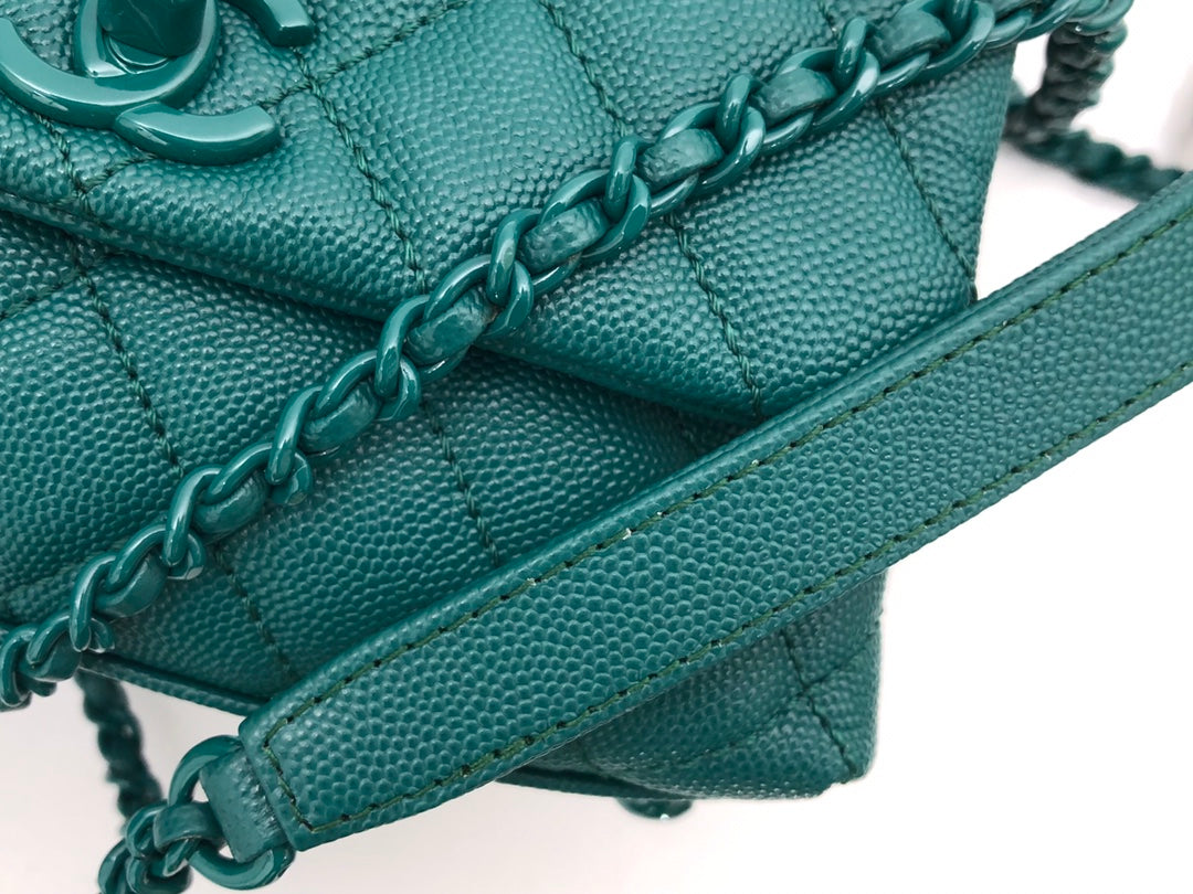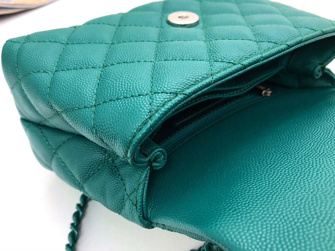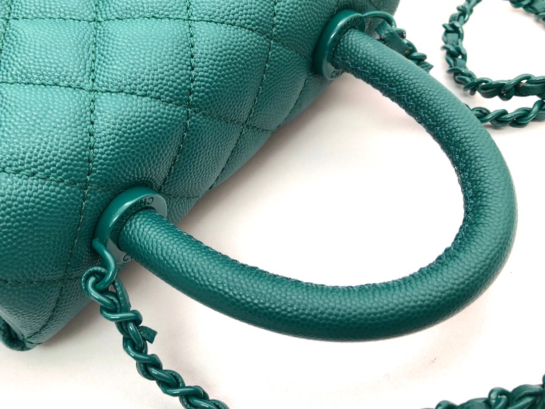 CC Coco Hanle Mini 19cm Emerald Green Grained Calfskin Gold Hardware