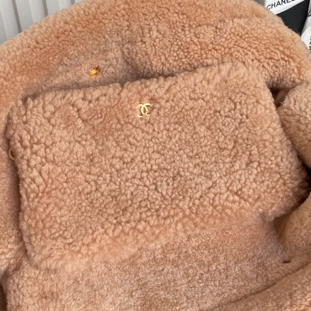 CC 24K Hobo 22 Bag 20cm Brown Wool Fur